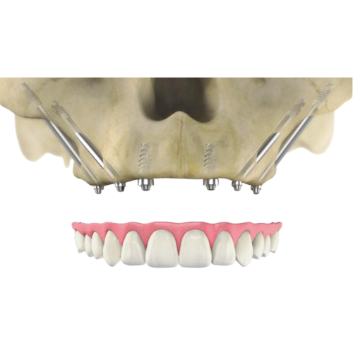 Zygomatic implants are used to support the upper jaw in patients who lack bone volume or density. When standard implants aren’t stable enough, many dentists will avoid immediate teeth and place a removable denture for 4-6 months of healing while the implants integrate. Instead, zygomatic implants can be used for predictable, stable bone to support immediate teeth.